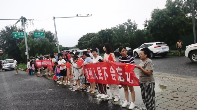 組織部分群眾到涿州南高速口歡送支援涿州救援隊的救援勇士們和迎接指引各地支援捐贈物資人員和車輛!